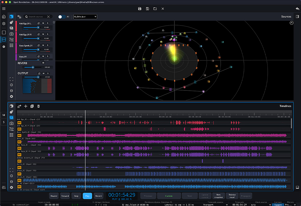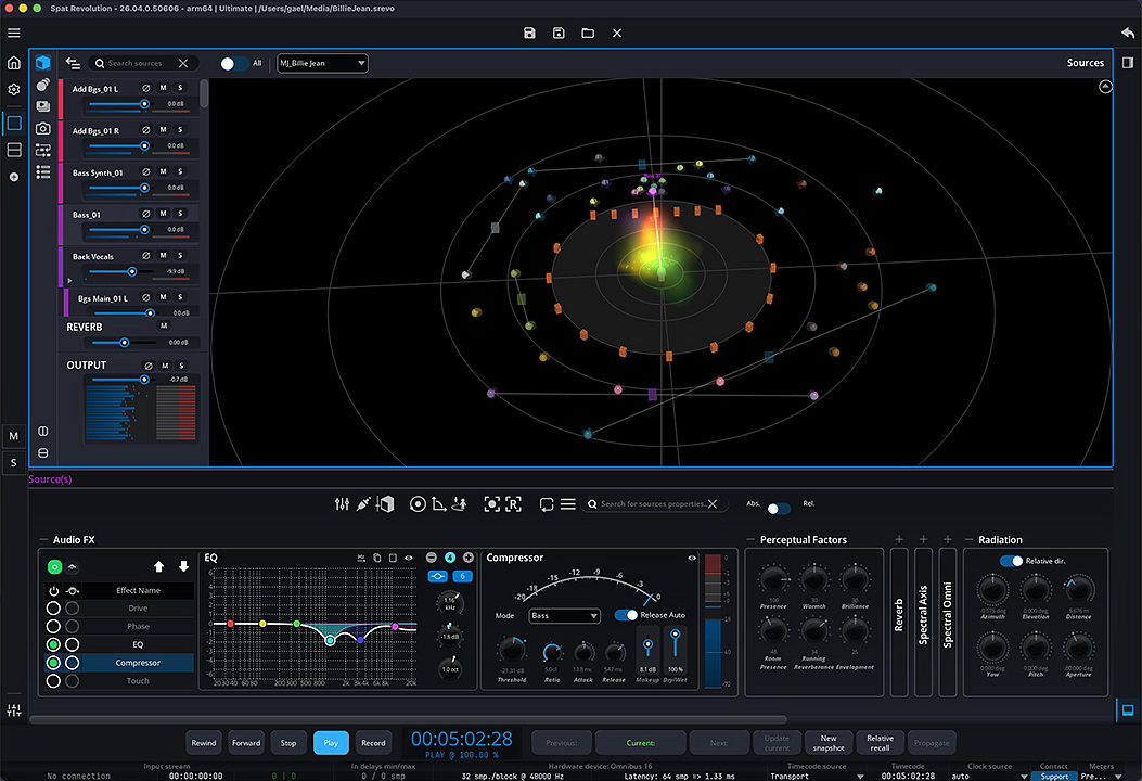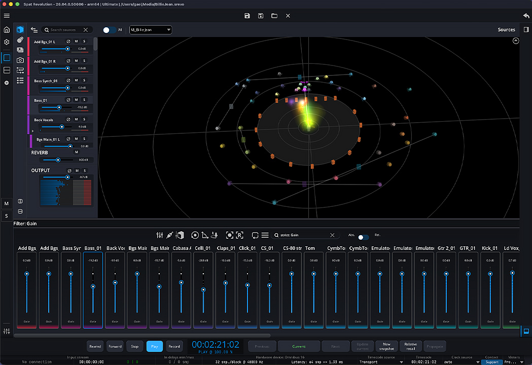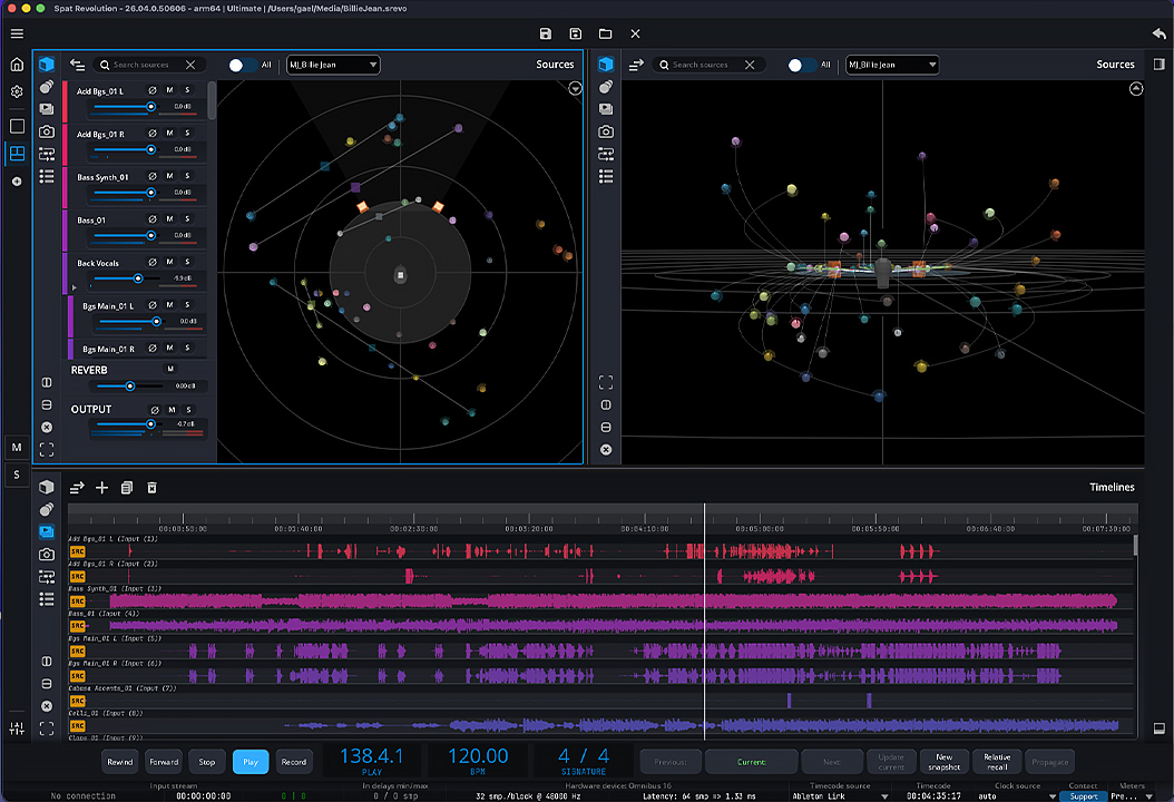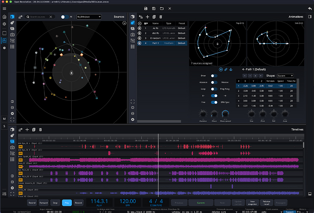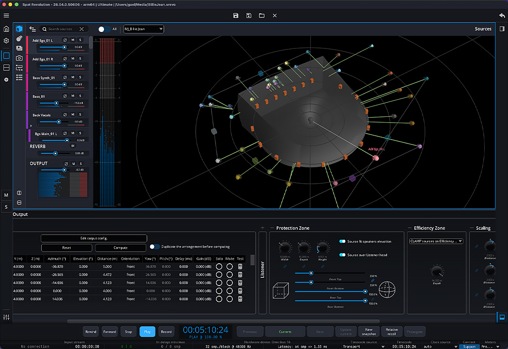 Gaël Martinet : Absolutely. The new version of SPAT Revolution integrates show control, a cue sequencer, a multi-timeline playback recorder, audio processing, trajectory animations, a new approach to the protection zone, and all of it synchronised via LTC, MTC and Ableton Link.