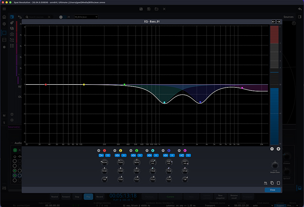 EQs are also available on the outputs and on the speakers, in order to correct the immersive system. This new option is very interesting because it makes it possible to assign automatically in SPAT the EQs calculated by MIRA’s Auto EQ function. I think that should help a little…