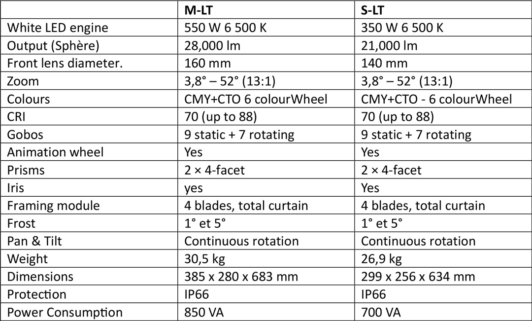Claypaky also offers a 550 W LED version, the Arolla Aqua M-LT. Equipped with the same features as the S-LT (colour mixing, zoom, framing module, iris, and continuous pan & tilt rotation), this fixture is equally at home in short-, medium- and long-throw applications, delivering up to 28,000 lumens.