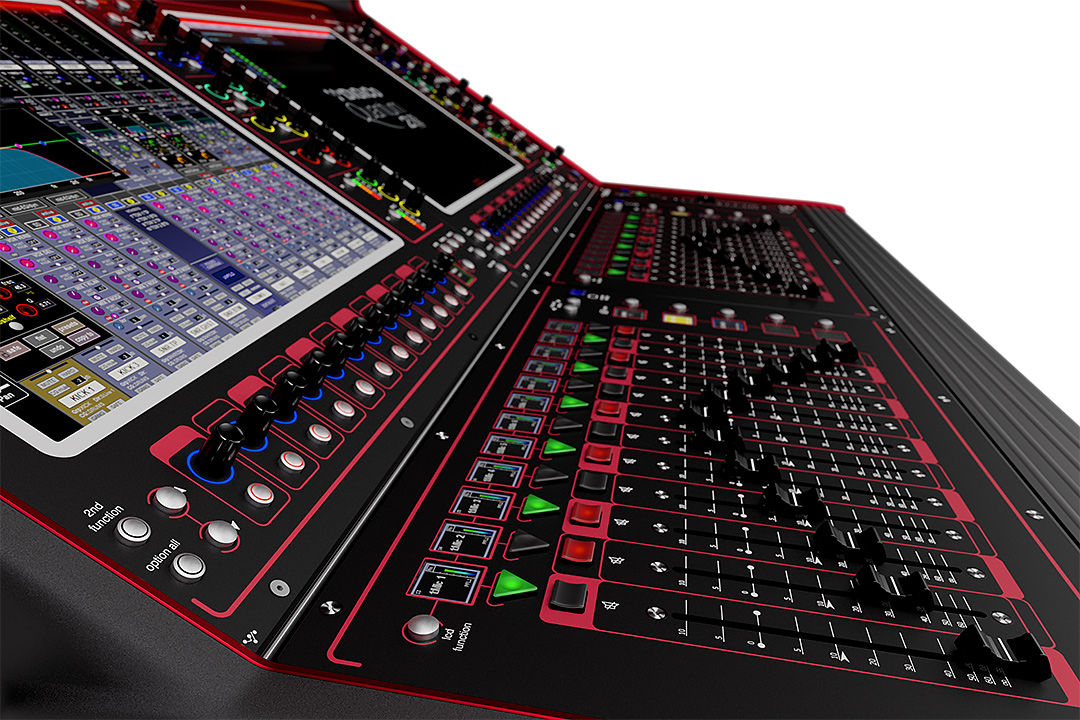 Also included are a 12×12 Matrix, four MADI ports and dual DMI ports for added connectivity, 8×8 analog and four AES channels for local I/O, built-in UB MADI, optional optics, Fourier Audio, and Waves SoundGrid integration, plus dual PSU.