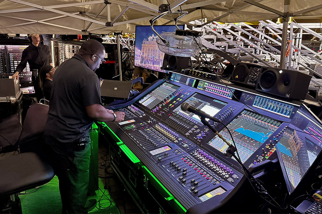 Also streamed live on Disney+, Hulu, and ABC, a massive worldwide audience tuned in to witness uplifting musical messages delivered by a star-studded lineup, including co-directors Andrea Bocelli and Pharrell Williams, along with John Legend, Jennifer Hudson, Jelly Roll, Karol G, and others. And making sure that all of the music performed at this historic event came through crystal clear was a pair of DiGiCo Quantum852 consoles, at front of house and monitors, provided by the Berlin, Germany office of Clair Global.